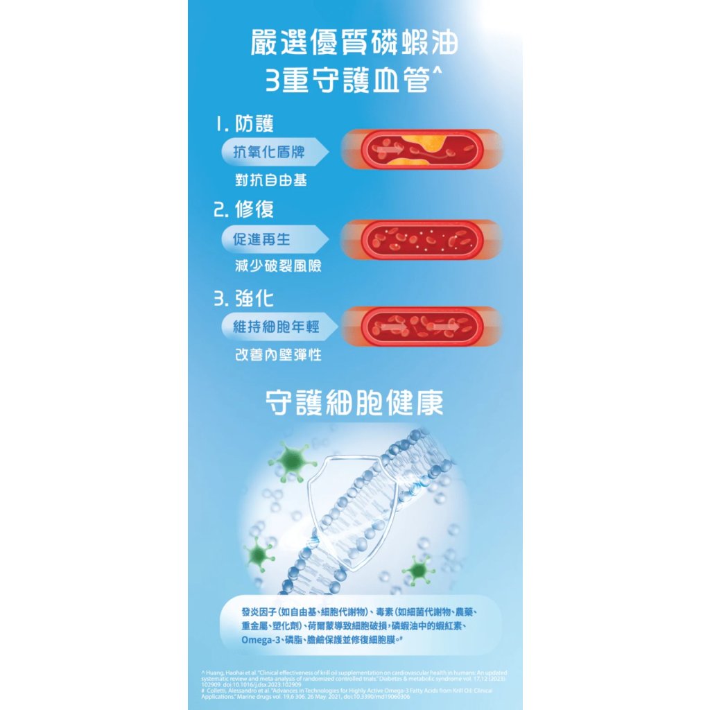 蝦青素抗氧化力遠超維他命 C(6000倍)、E(550倍),有效中和自由基,延緩衰老。