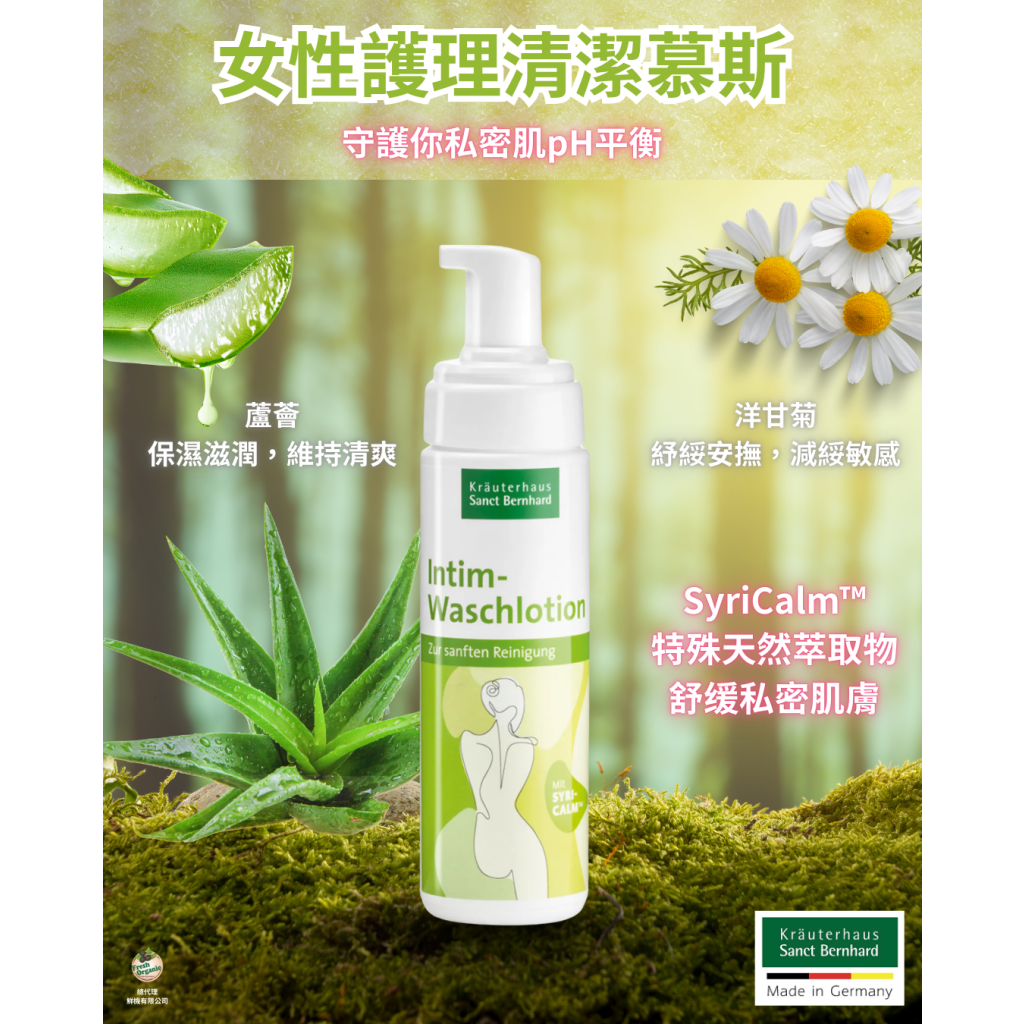 這款 德國 Sanct Bernhard 天然草本私密處清潔慕斯 來自德國百年草本製藥專家。